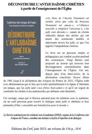 Jeudi 16 novembre de 18H30 à 30H30, le groupe AJCF Paris-Ouest reçoit le père Christophe Le Sourt, pour la présentation du livre "Déconstruire l’antijudaisme chrétien" édité par la Conférence des évêques de France.