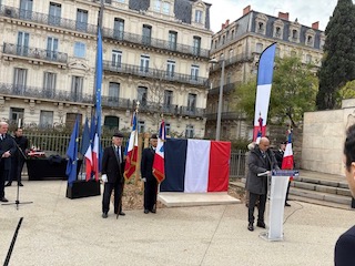 Dimanche 30 novembre 2025, place de la Légion d’honneur à Montpellier, Michael DELAFOSSE, maire de Montpellier et président de Montpellier Méditerranée Métropole, Haim KORSIA, grand rabbin de France, Michaël IANCU, directeur de l’Institut Universitaire Maimonide-Averroès-Thomas d’Acquin ont inauguré une Stèle à la Mémoire des Juifs déportés de Montpellier et de l’Hérault dont la liste a été établie par Michaël IANCU, fils de notre ami Carol IANCU, Prix AJCF-HH 2024.